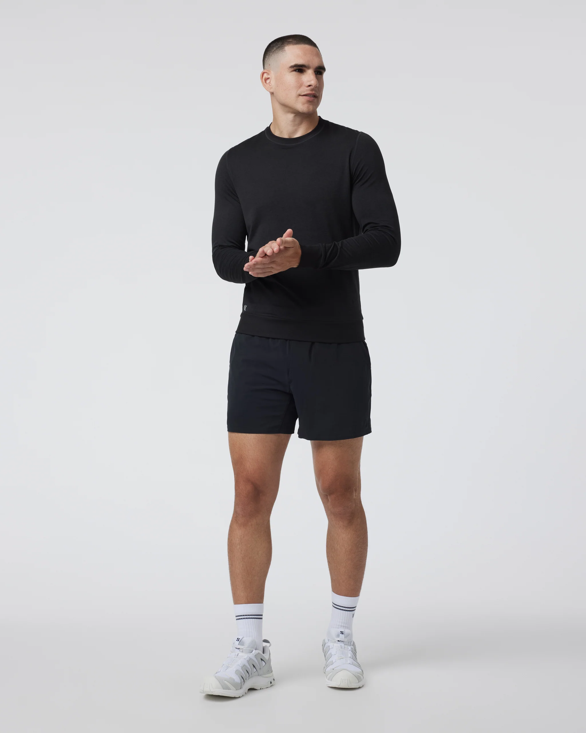 Your go-to lightweight crew neck layering top for cold-weather workouts, the Ponto Performance Crew is made with our buttery-soft performance stretch knit from 89% recycled material that is quick drying and moisture wicking. There is a side zip stash pocket perfect for holding a key or card.